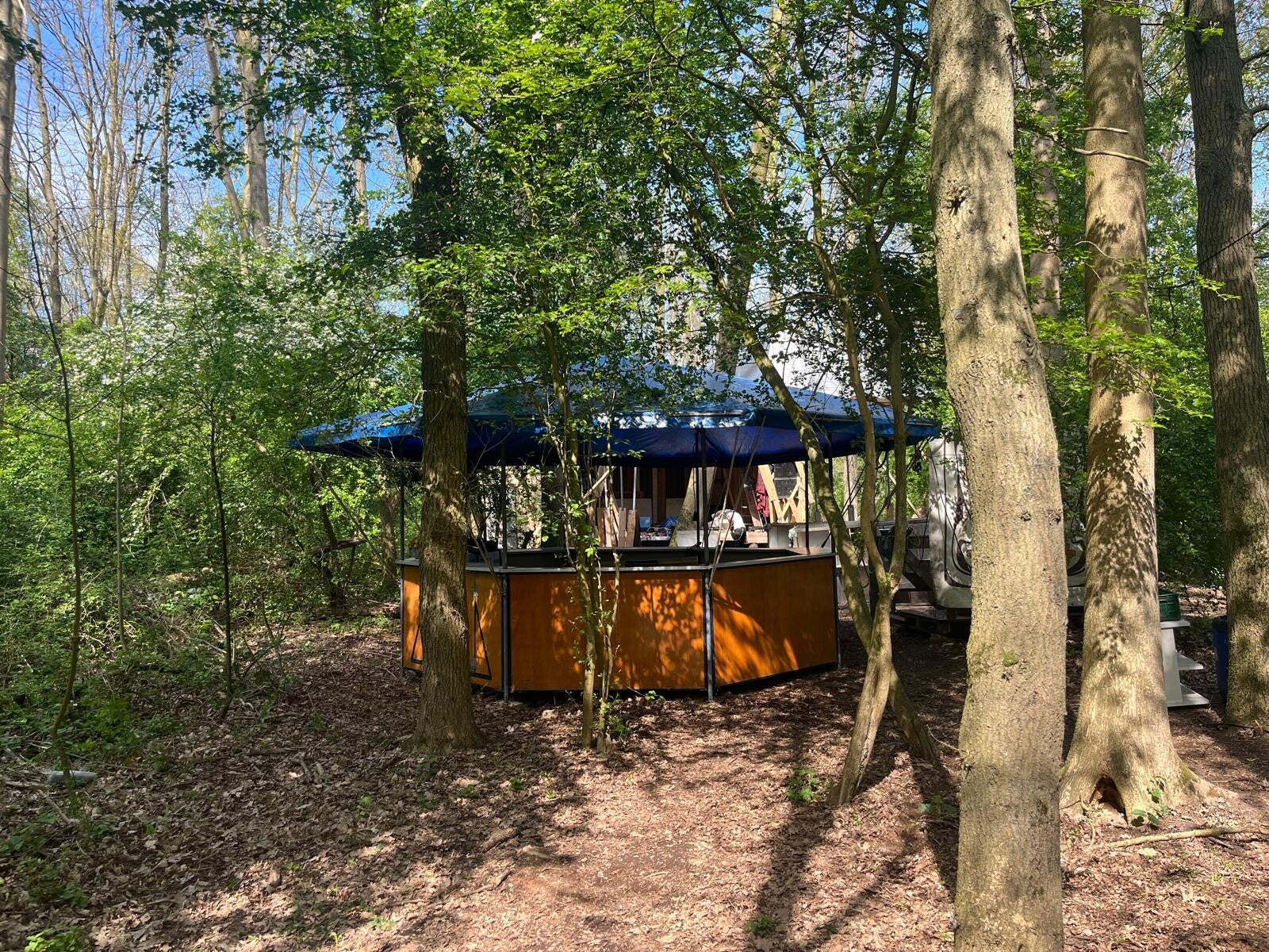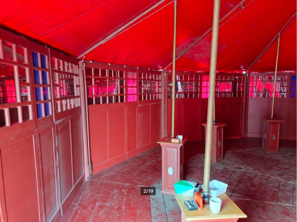 Stap binnen in een wereld van nostalgie en elegantie met onze authentieke spiegeltent. Met haar warme houten interieur, fonkelende spiegels en prachtig blauw glas ademt deze tent een unieke sfeer. De combinatie van klassieke charme en moderne flexibiliteit maakt onze spiegeltent perfect voor uiteenlopende evenementen.